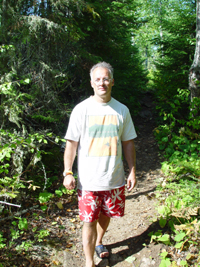 | Tony, or Anthony as many know him, is always very helpful on BWCA trips. This is evident above as he takes another load across a portage or when he points out to Jim that there are two perfectly nice, dry tents right over there where he could have spent the night. |